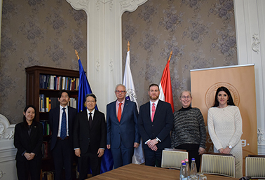 Március 3-án Őexcellenciája Kimura Tetsuya, Japán újonnan kinevezett magyarországi nagykövete tett bemutatkozó látogatást egyetemünkön. A Károlyi–Csekonics-palotában Trócsányi László rektor, Csoma Mózes dékán, Nagy Judit nemzetközi dékánhelyettes és Judi Tamara nemzetközi kommunikációs referens fogadta nagykövet urat és munkatársait, Ozaki Takeshi első titkárt, a Japán Nagykövetség Kulturális és Sajtóosztályának vezetőjét, és Shinogi Natsuki attasét, a Politikai Osztály tanácsadóját. A találkozó alkalmával a felek megerősítették, hogy folytatni kívánják a korábbi gyümölcsöző szakmai együttműködést.