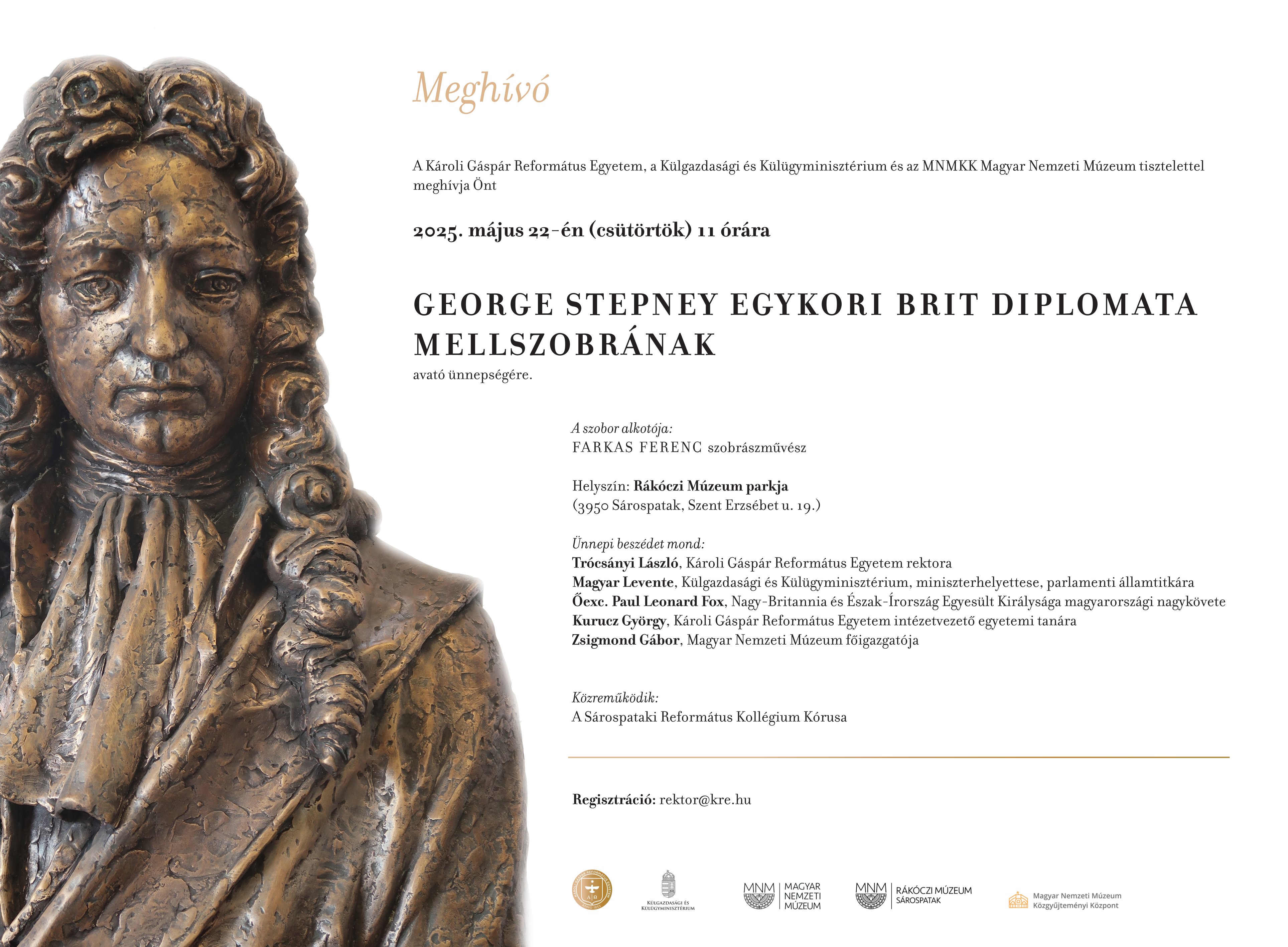 Május 22-én 11 órakor avatják fel a George Stepney egykori brit diplomata tiszteletére készített mellszobrot Sárospatakon, a Rákóczi Múzeum parkjában. A szobor Farkas Ferenc szobrászművész alkotása.