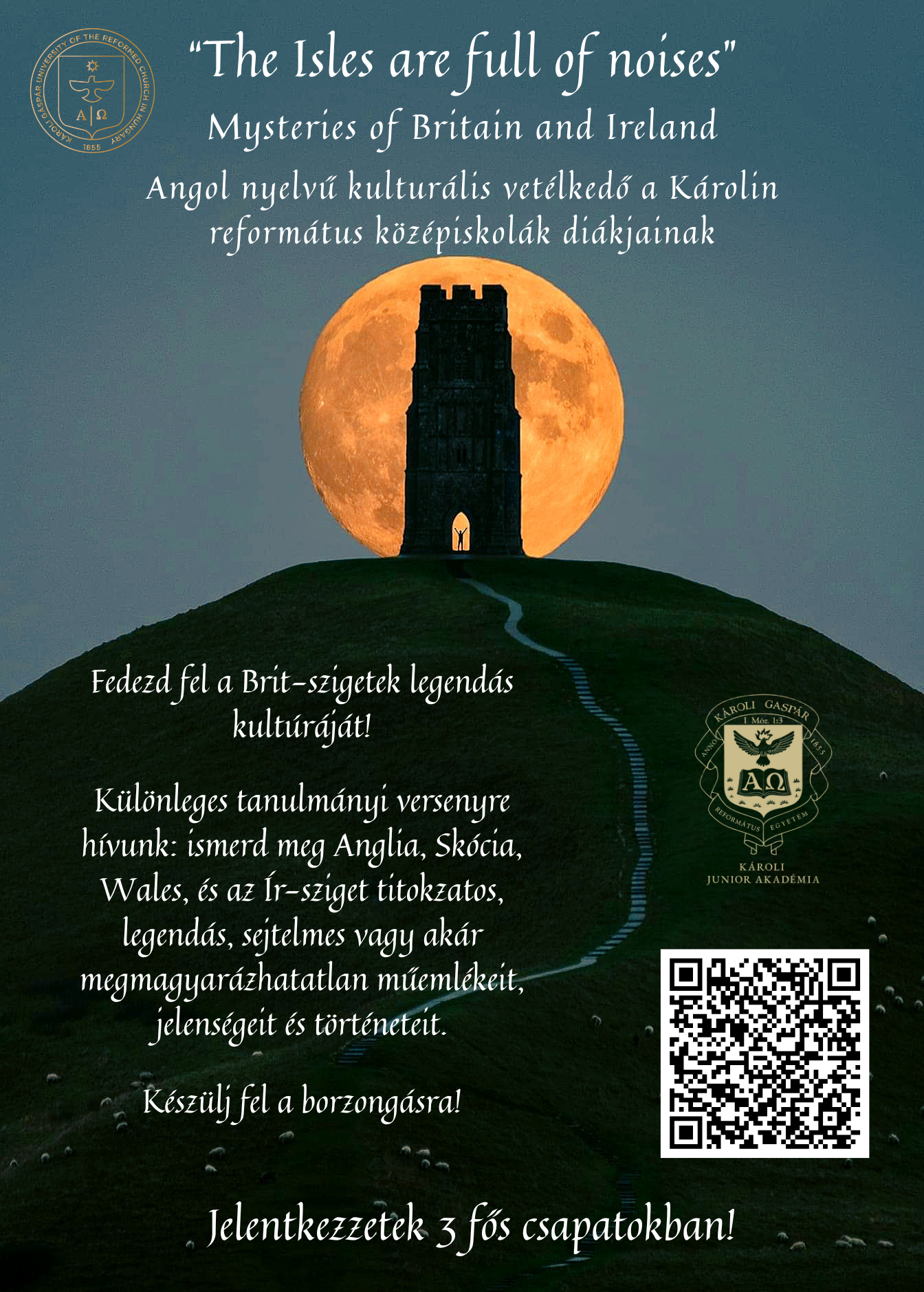 3. A verseny tárgya, jellege: A 2025. évi angol nyelvű verseny tárgya a Brit-szigetek kultúrája, különös tekintettel annak titokzatos, legendás, sejtelmes vagy akár megmagyarázhatatlan elemeire. A verseny különböző történelmi időszakok, helyszínek, események és történetek feldolgozásán keresztül szólítja meg a diákokat. A versenyző diákcsapatok mindhárom fordulóban olyan feladatokat oldanak meg, amelyek a tárgyi ismereteik mellett feladatmegoldóképességüket, együttműködési készségüket és kreativitásukat is fejlesztik.